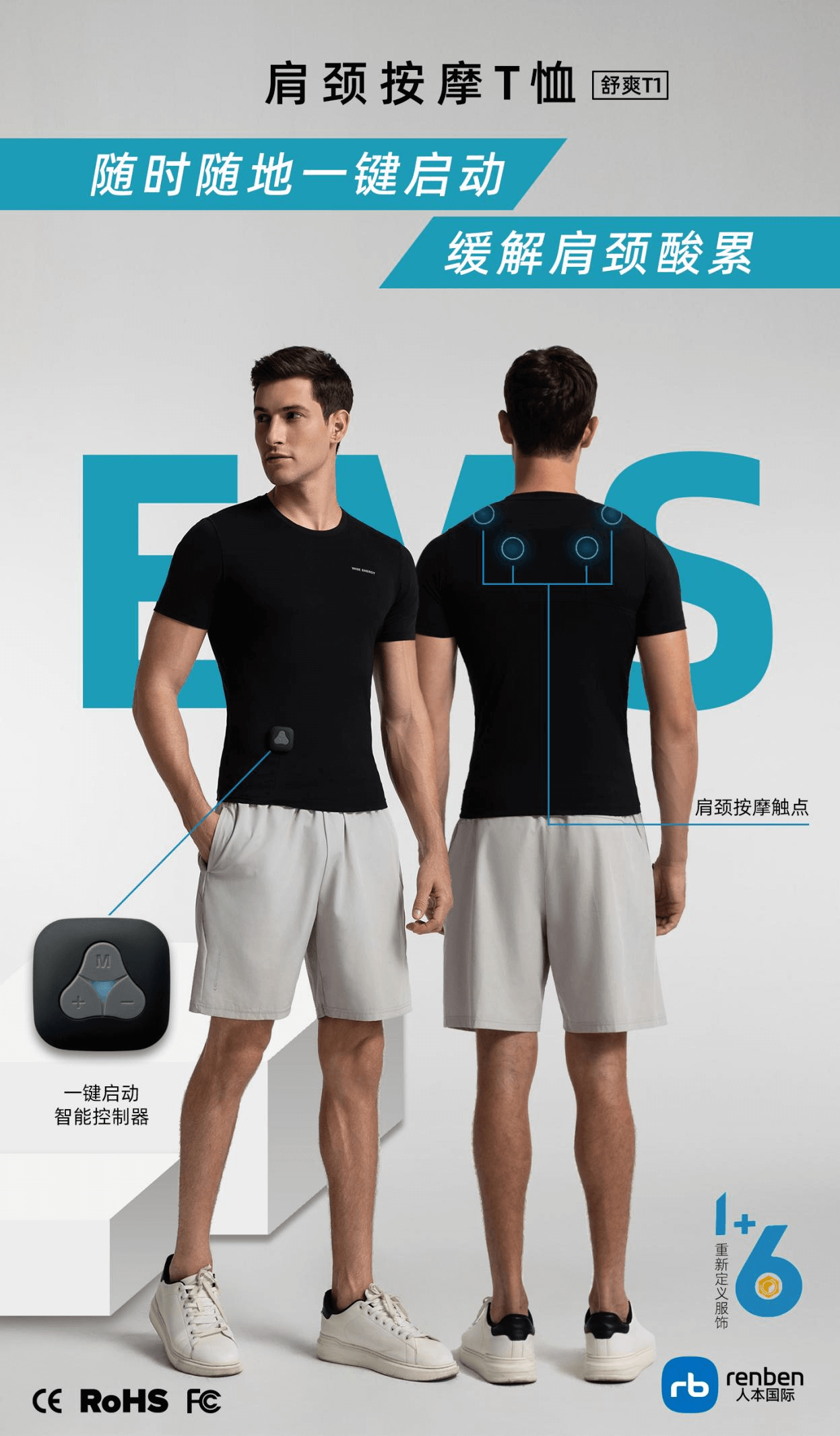 从优势上看,舒爽 T1 肩颈按摩 T 恤融合了先进科技与传统中医理论。它将 EMS 脉冲技术与中医穴位理论结合,实现了科技与养生的跨界融合。面料选用高品质材质,不仅舒适透气,能时刻保持肌肤干爽,还能紧密贴合身形,穿着毫无束缚感。此外,智能调控系统也是一大亮点,用户可以根据自身需求,轻松调节按摩强度与模式,定制专属的按摩体验,使用起来简单便捷。